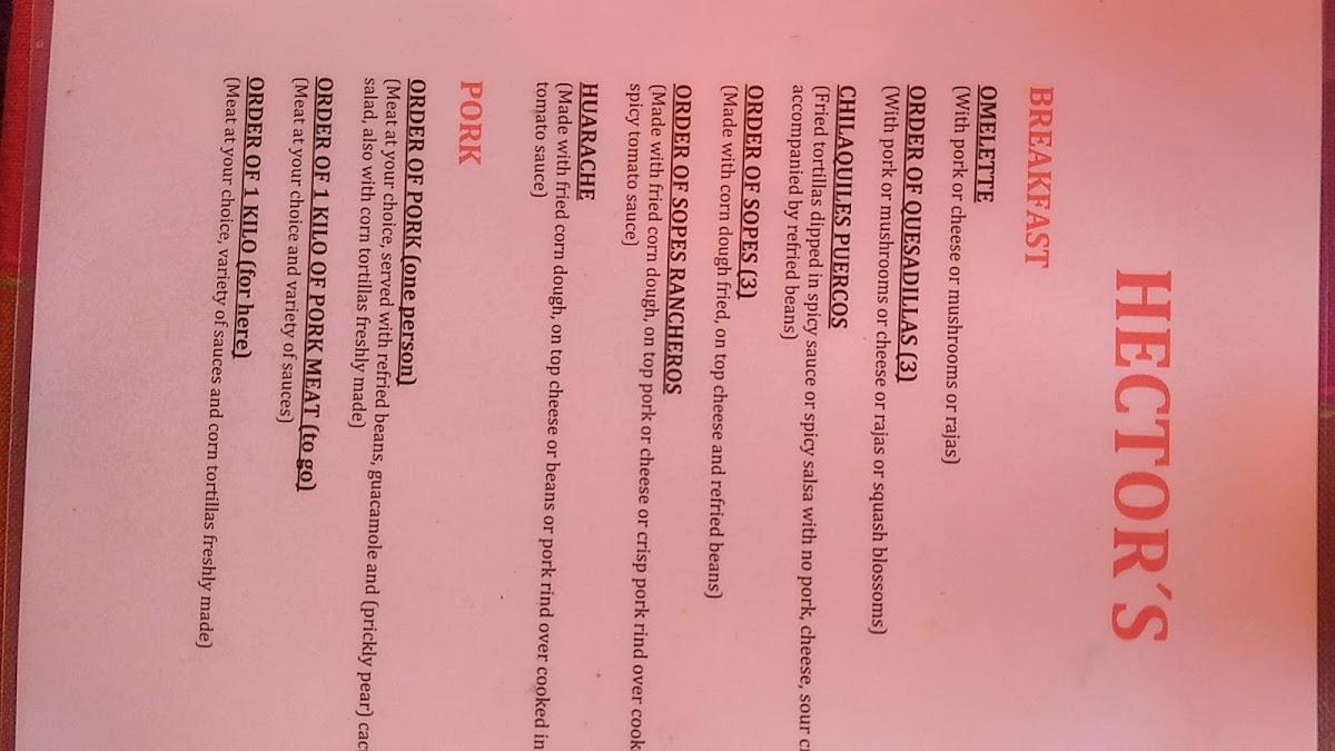 Carnitas Hector's, located at Carr Jocotepec-Chapala 1000, 45920 Ajijic, Jal., Mexico, offers an enticing menu that combines traditional Mexican flavors with a delightful dining experience. The restaurant’s menu includes a variety of mouthwatering options, catering to different preferences. Whether you're craving a casual bite or planning a special event, Carnitas Hector's has something to satisfy every palate.